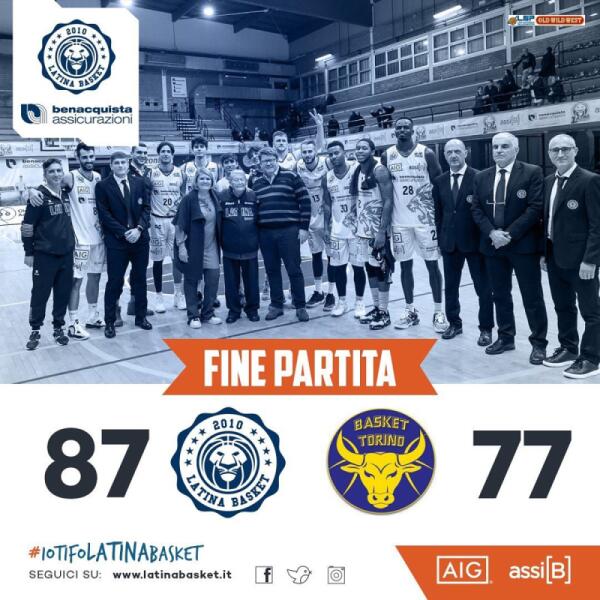 Basket A2 maschile: Latina conquista un meritato successo sulla Reale Mutua Torino (87-77).