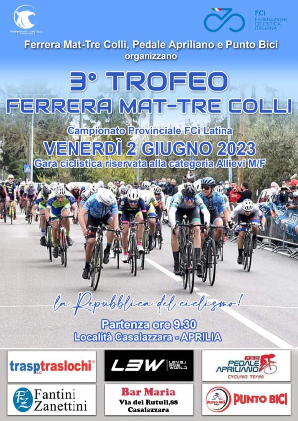 Ciclismo, questo venerdì 2 Giugno a Casalazzara, ad Aprilia, il terzo Trofeo Ferrera Mat-Tre Colli.
