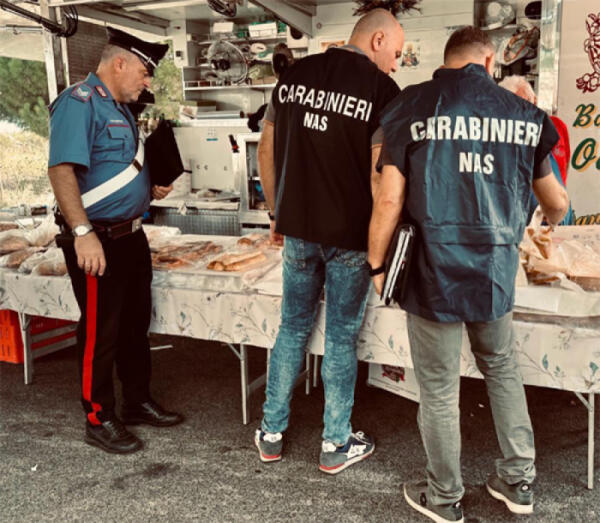 Controlli del Nas di Latina nei mercati settimanali: sequestrati 2 quintali e mezzo di prodotti ittici ed altri alimenti.