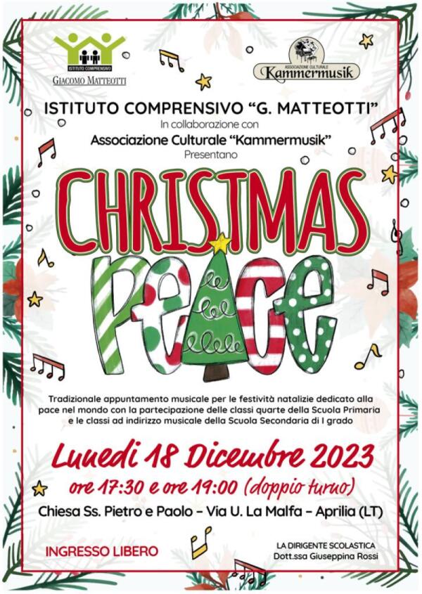 “Christmas Peace”: lunedì 18 dicembre il tradizionale concerto di Natale dell’Istituto “Matteotti” di Aprilia.