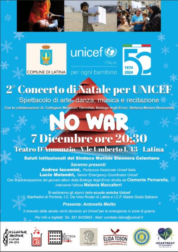 Al Teatro D’Annunzio di Latina questo sabato la seconda edizione del concerto di Natale “NO WAR” organizzato dall'Unicef.