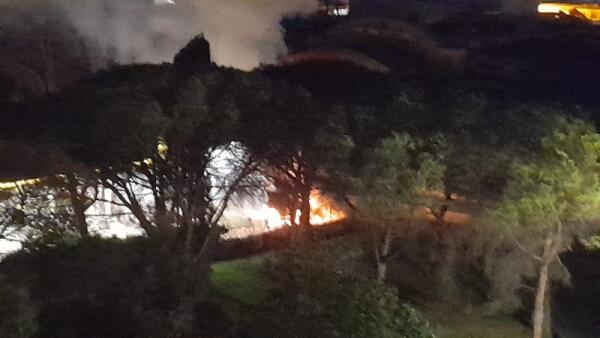 Auto in corsa in fiamme sulla Nettunense ad Aprilia, un tassista si ferma al distributore per spegnere l’incendio.