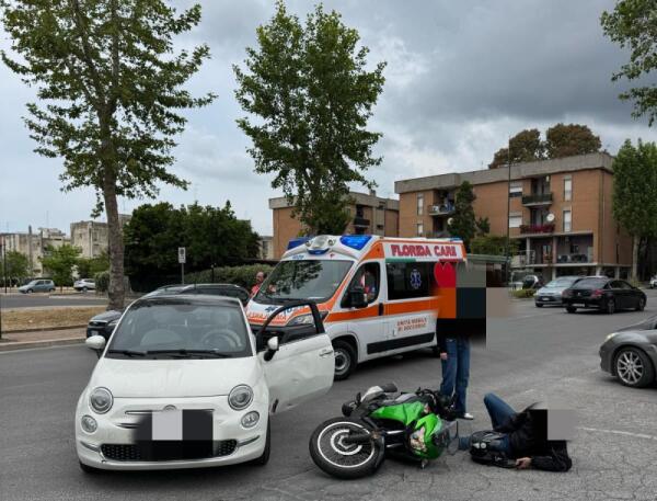 Scontro tra un'auto ed una moto ad Aprilia, all'incrocio tra via Mascagni e via Mozart.