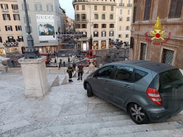 Con l'auto percorre la scalinata di Piazza di Spagna a Roma