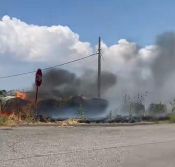 Incendio di fronte all’area fiere di Campoverde vicino alla Pontina
