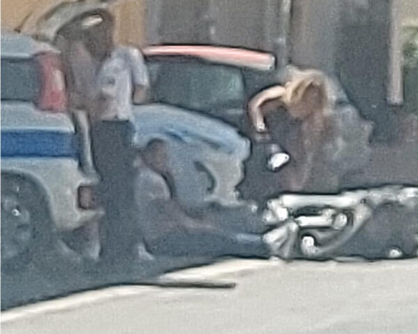 Soccorso da un'ambulanza che passava per caso, motociclista molto grave