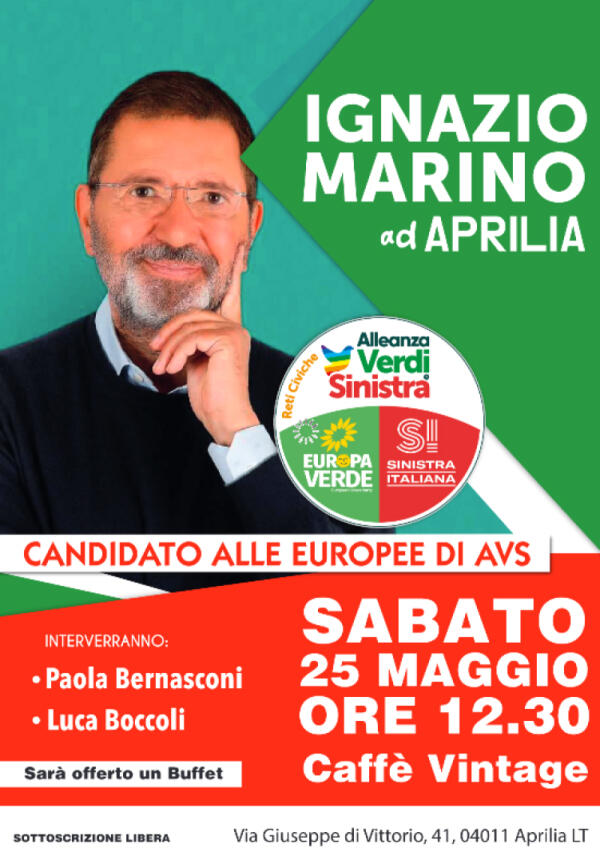 Ignazio Marino, candidato alle Europee con Alleanza Verdi e Sinistra, questo sabato ad Aprilia e Latina.