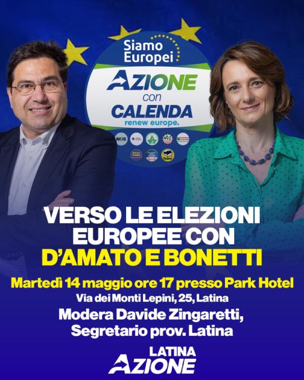 “Verso le elezioni Europee”: questo pomeriggio Alessio D’Amato ed Elena Bonetti a Latina.