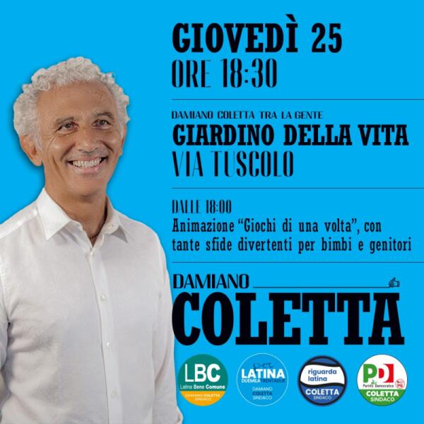 Incontro oggi pomeriggio a Latina con la coalizione del candidato Sindaco Damiano Coletta.
