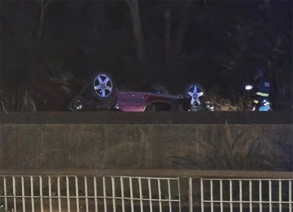 Aprilia, violento scontro sulla Nettunense. Una delle auto si ribalta e finisce sui cordoli dello spartitraffico.