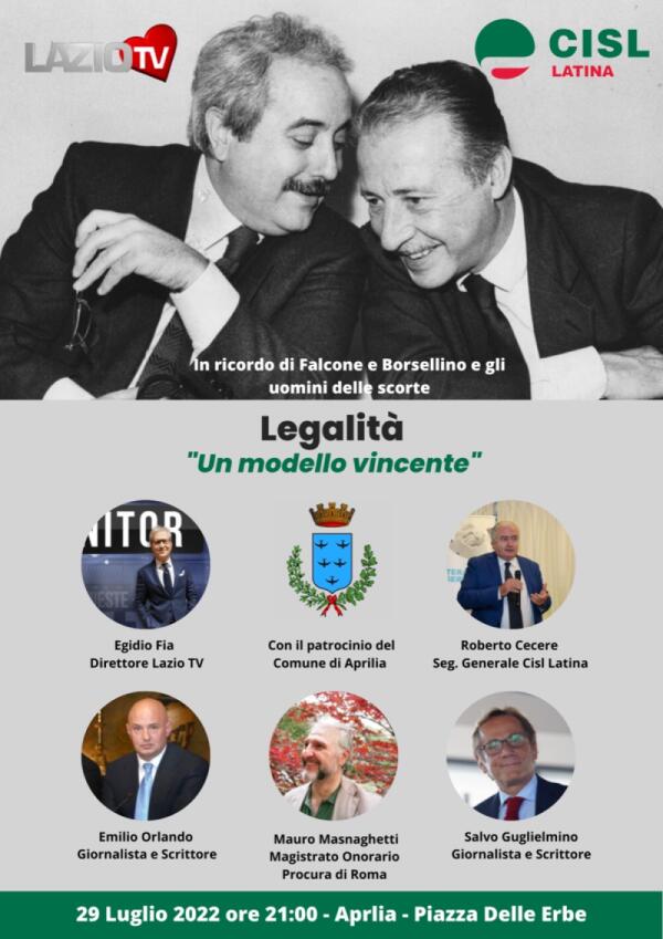 Stasera a Sezze la prima tappa dell’evento targato Cisl Latina dal titolo “Legalità: un Modello Vincente”.