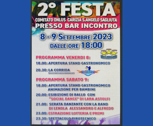 SEZZE - Musica, danza, gastronomia e fuochi d'artificio per la festa di settembre del comitato onlus Carizia Sant’Angelo Sagliuta