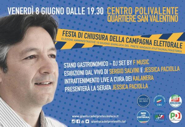 Il candidato a sindaco di Cisterna Gianluca Del Prete chiude la campagna al Quartiere San Valentino.