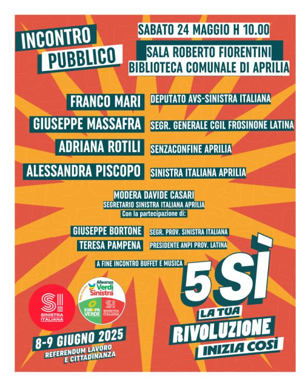 Referendum 2025: sabato incontro pubblico ad Aprilia