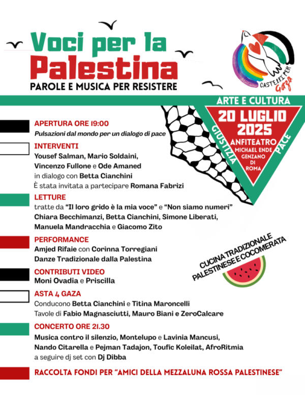 Genzano, il 20 luglio "Castelli per Gaza. Voci per la pace" all'Anfiteatro Michel Ende