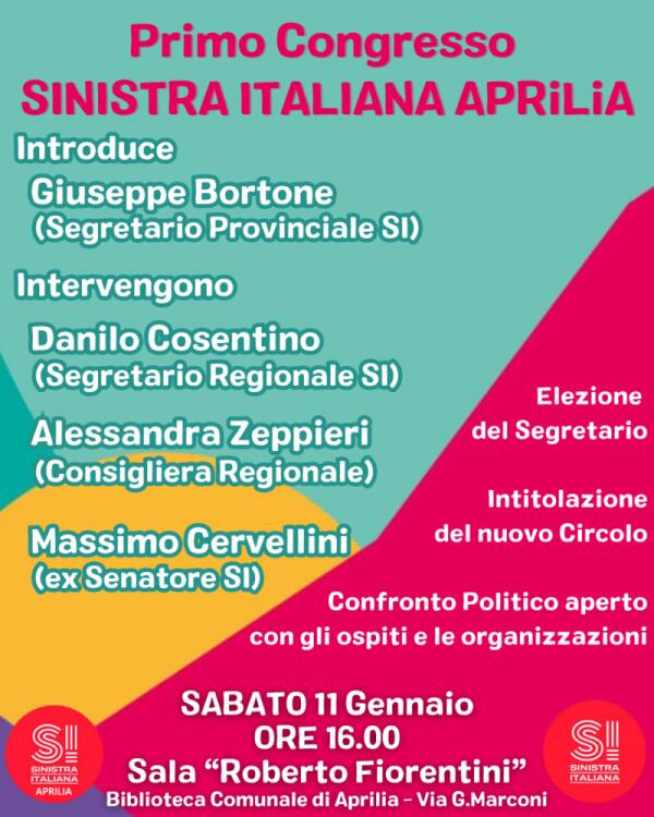 Sinistra ltaliana Aprilia a congresso sabato 11 gennaio