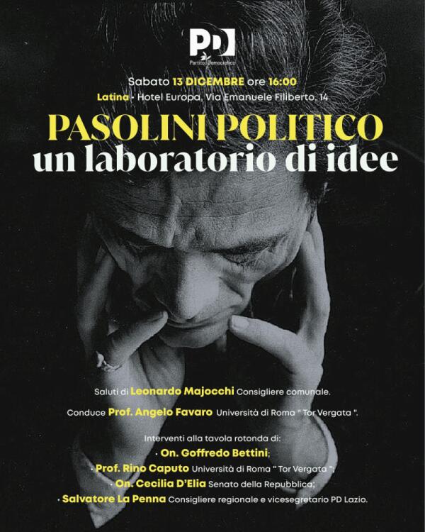 Il PD di Latina ricorda Pasolini con un incontro dedicato al suo pensiero politico