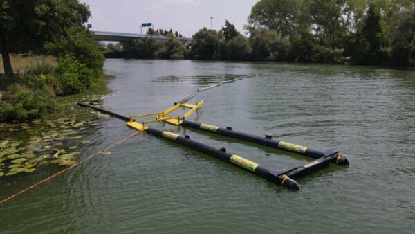 La Regione Lazio inaugura la barriera acchiappa-rifiuti sul fiume Garigliano, nel sud pontino: intercetta i rifiuti prima che arrivino in mare.