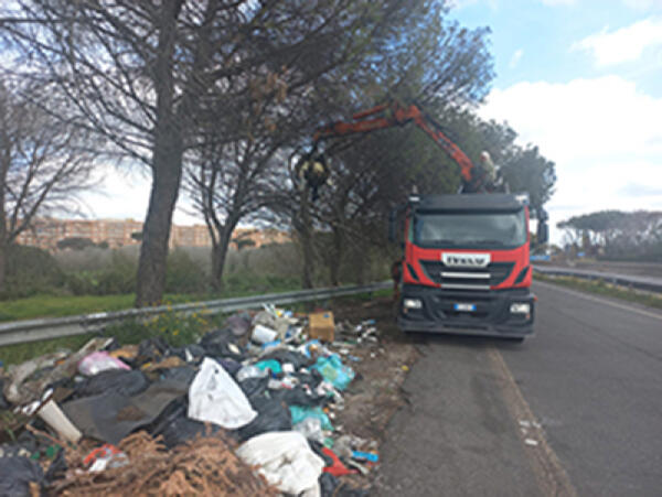 Operazione straordinaria di rimozione di rifiuti sulla Pontina, a Spinaceto.