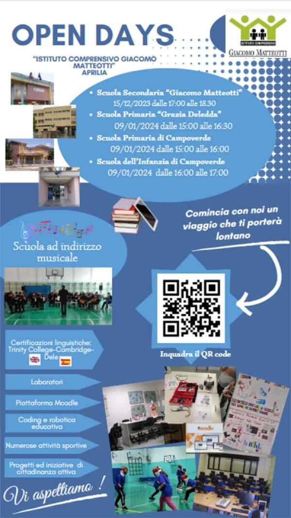Martedì 9 Gennaio giornata di “Open Day” nelle scuole dell’Istituto Comprensivo “Giacomo Matteotti” di Aprilia.