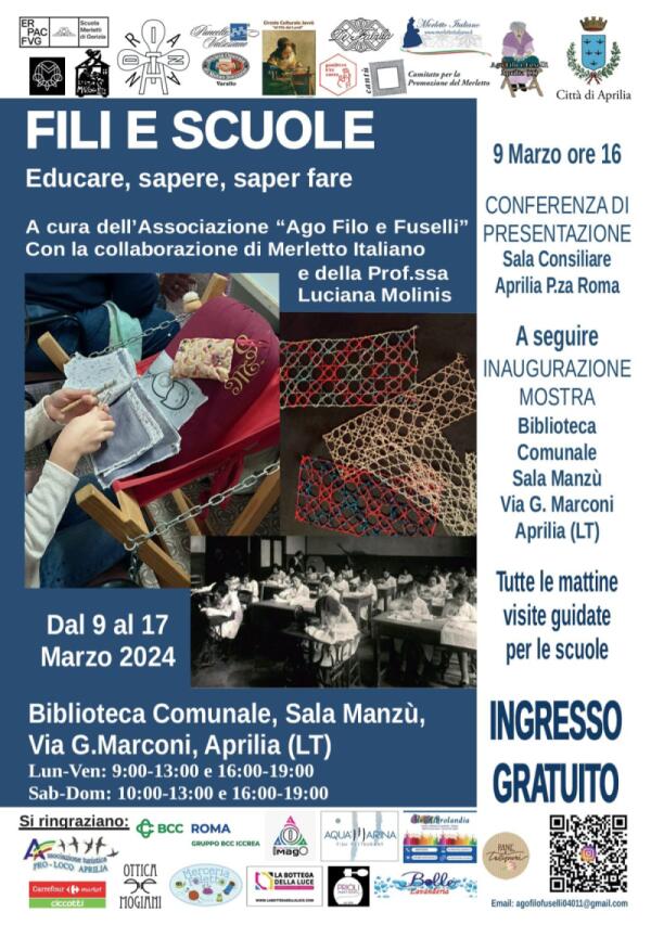 “Fili e scuole. Educare, sapere, saper fare”: il 9 Marzo ad Aprilia il convegno dell'associazione “Ago, Filo e Fuselli”.