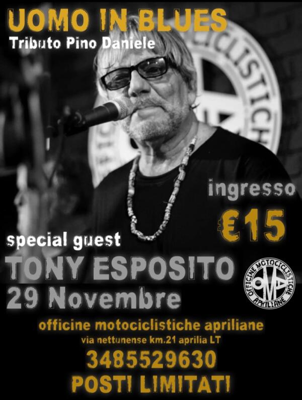 Tributo a Pino Daniele alle Officine Motociclistiche Apriliane, special guest Tony Esposito