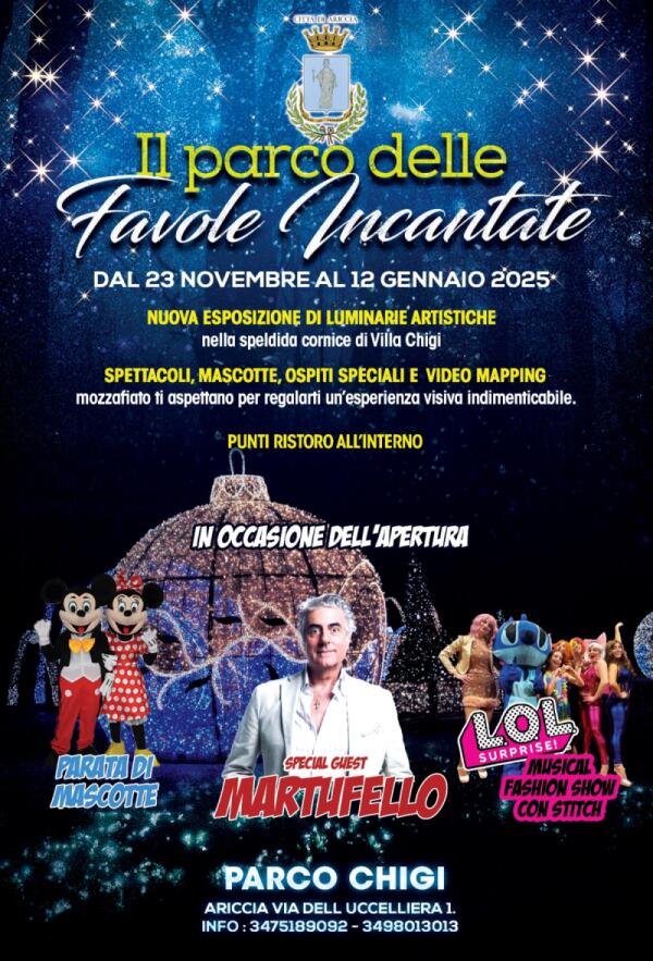 AD ARICCIA IL PARCO DELLE FAVOLE INCANTATE, LUMINARIE E MAGIA AL PARCO CHIGI