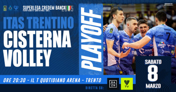 Pallavolo di Superlega, playoff scudetto: il Cisterna Volley questo sabato affronta l’Itas Trentino nella gara1.