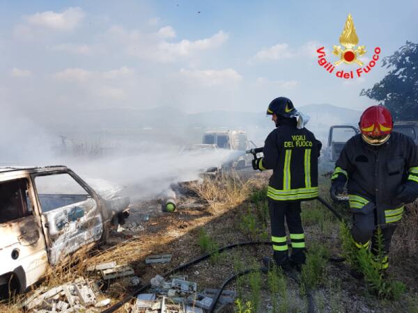Auto e terreno in fiamme sulla strada del Frutteto, a Pontinia.