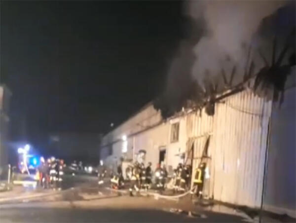Due capannoni in fiamme in via dei Castelli Romani, a Pomezia.