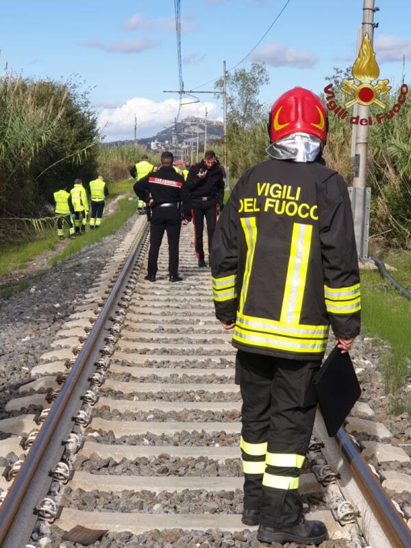 Donna investita ed uccisa da un treno in corsa a Guidonia. Intervengono i vigili del fuoco del Comando Provinciale di Roma.
