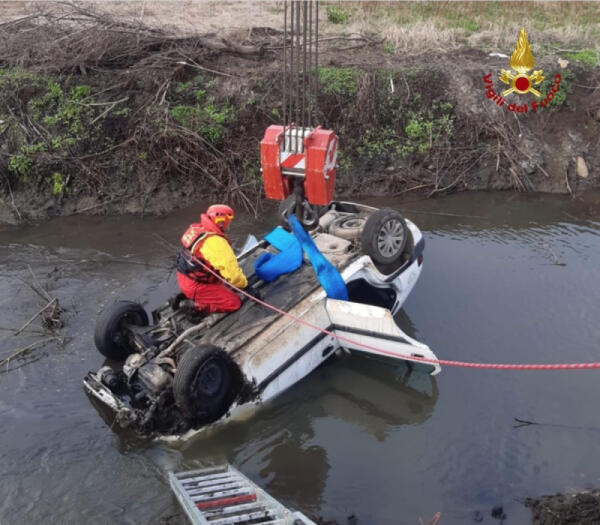 Sezze - Finisce con l'auto capovolta nel canale: salvo