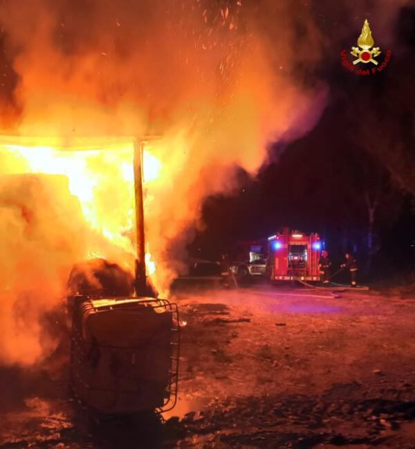 Capannone in fiamme in un’azienda agricola sulla Litoranea, a Latina. Bruciano 400 balloni di fieno.
