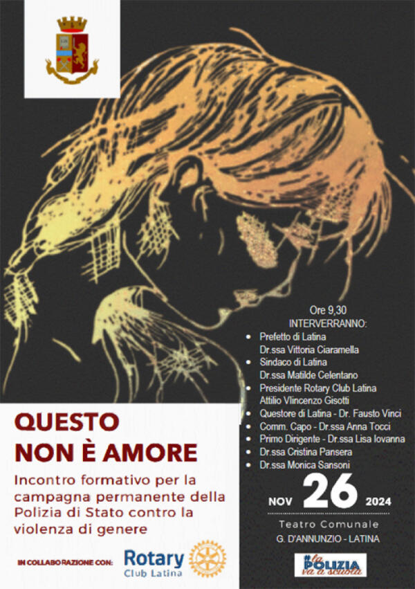 Violenza di genere: tre convegni a Latina a cura della Polizia di Stato. L'evento conclusivo il 26 Novembre al D'Annunzio.