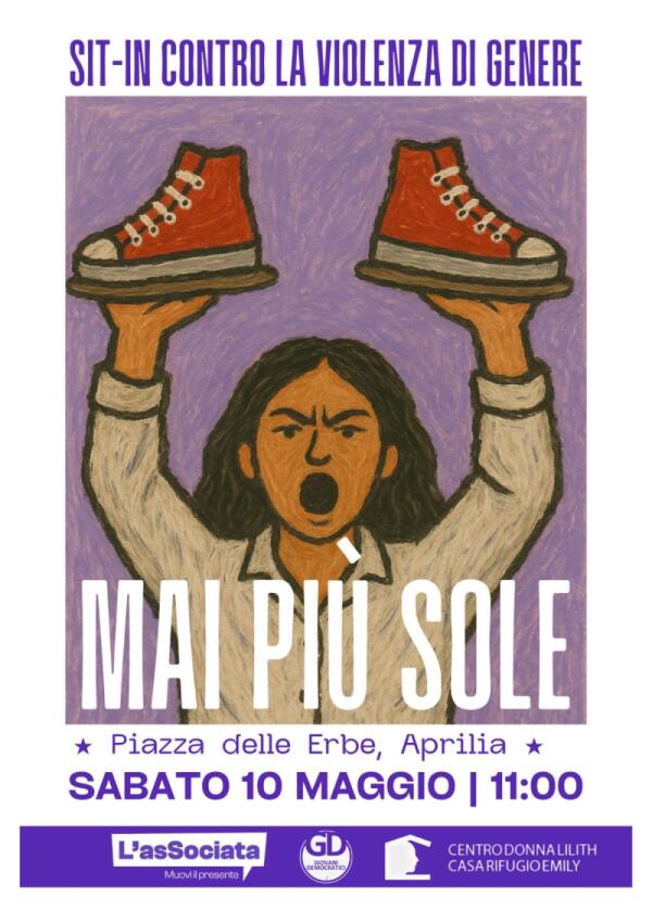 “Mai più sole”, sit-in questo sabato ad Aprilia: i Giovani Democratici scendono in piazza contro la violenza di genere.
