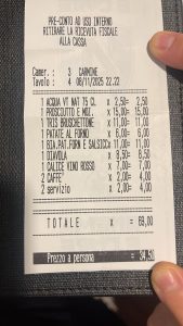 Mangiano pizza, antipasti e caffé per 69 euro, ma preferiscono alzarsi e scappare senza pagare. E’ accaduto alla pizzeria Ci.Ro di Latina che poi ha pubblicato la foto della coppia (con i volti coperti) e il loro scontrino sui social. Il titolare dell’attività ha invitato i due giovani fuggiti via senza pagare a tornare e saldare il conto, entro tre giorni.