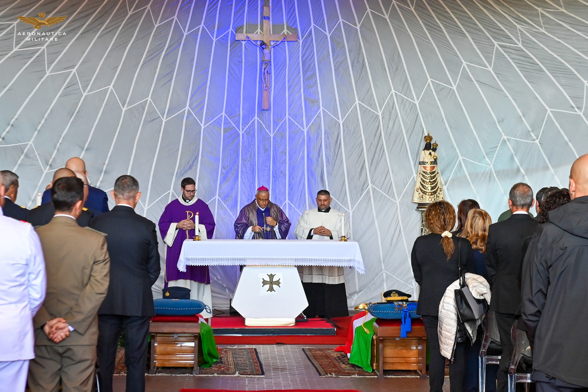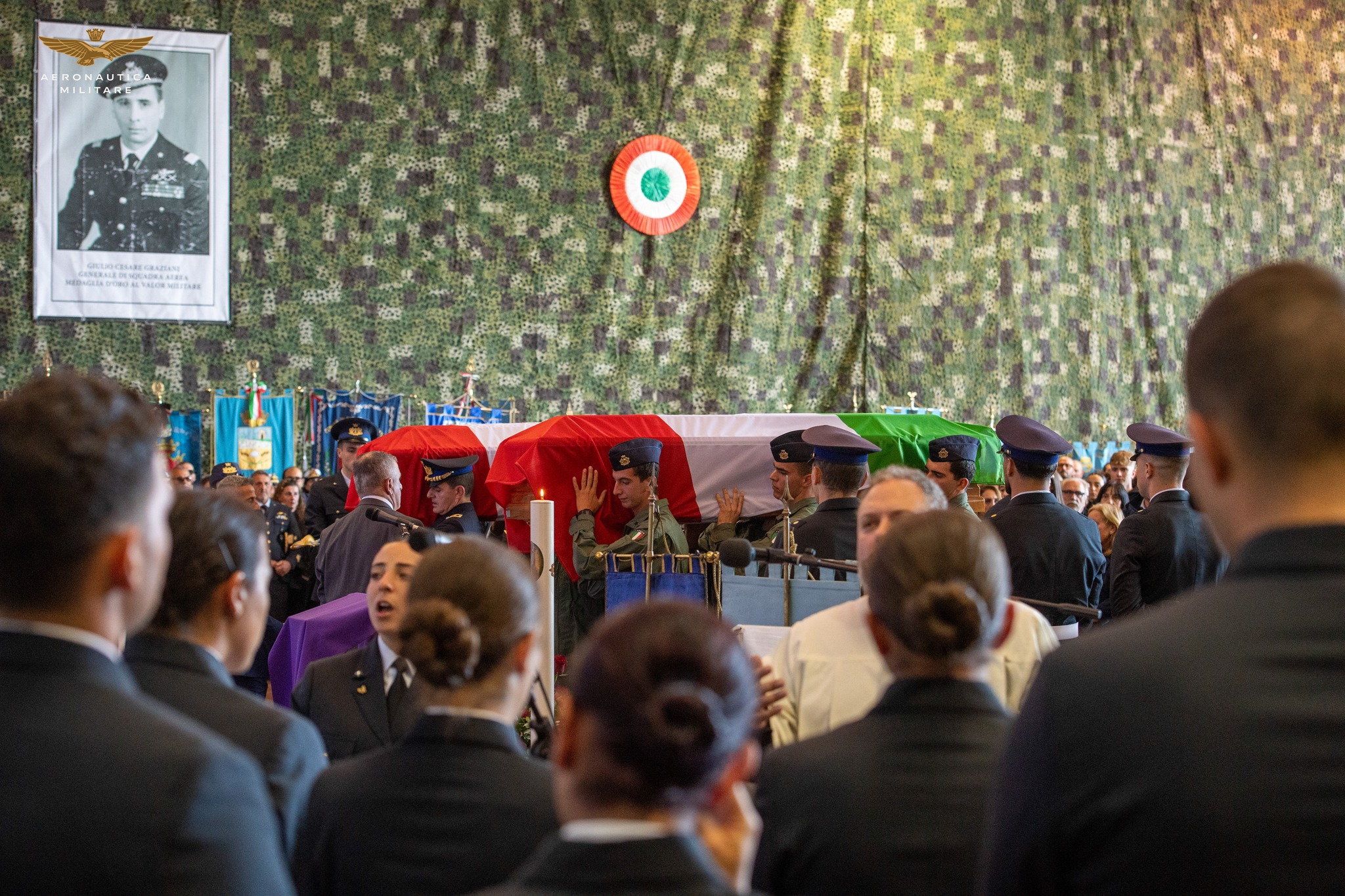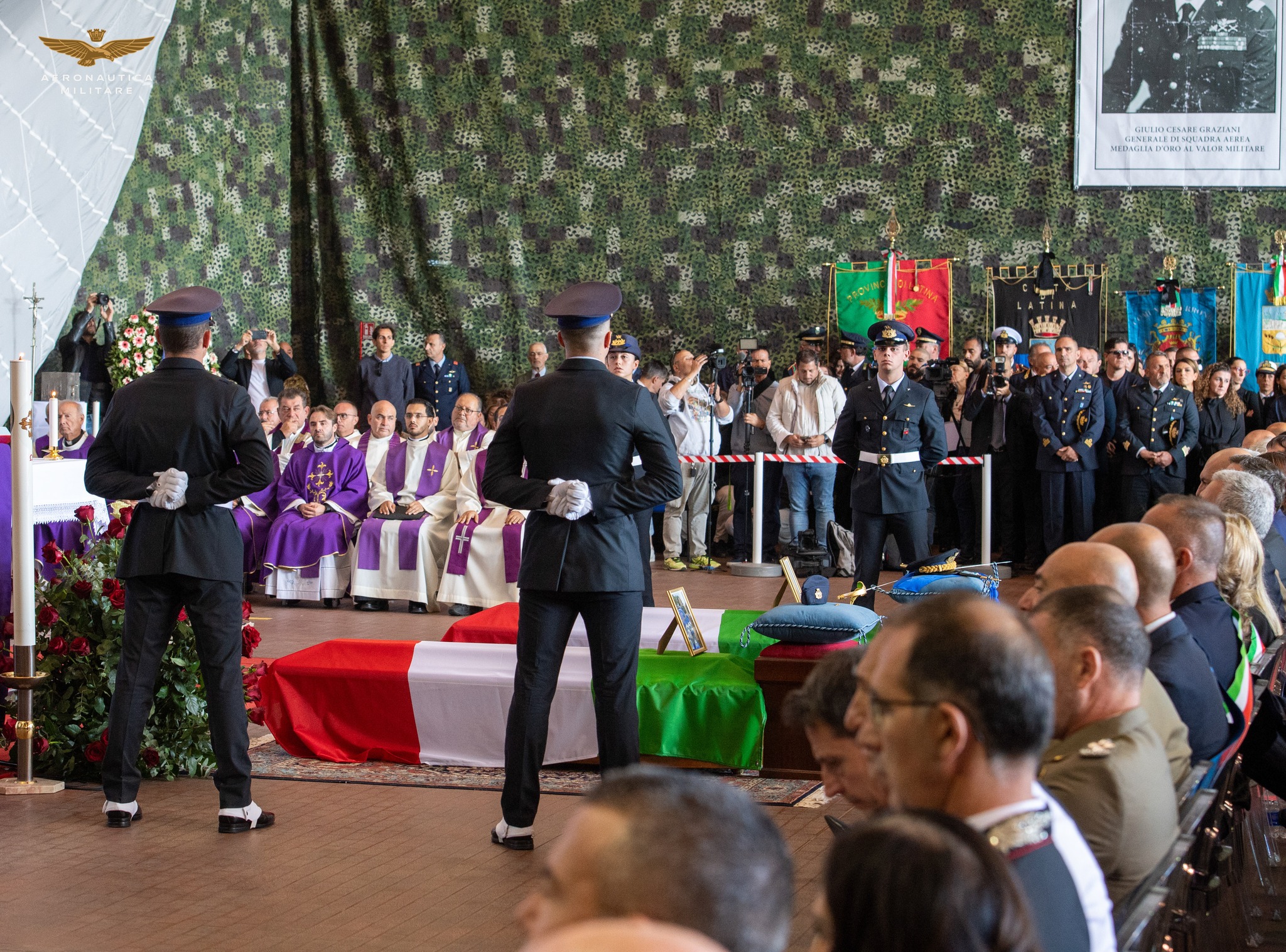 “Cieli blu. Da oggi Simone e Lorenzo voleranno tra le stelle. sempre più in alto!”. Così l’Aeronautica Militare saluta per l’ultima volta il Generale Simone Mettini e l'Allievo Ufficiale Pilota Lorenzo Nucheli, vittime dell’incidente aereo dello scorso 1° Ottobre a Sabaudia. Oggi, ai funerali di Stato - celebrati presso l’aeroporto militare Comani di Latina Scalo - c’erano, tra le varie autorità, anche il Ministro della Difesa, Guido Crosetto, il Sottosegretario di Stato alla Difesa, Matteo Perego di Cremnago, il Capo di Stato Maggiore della Difesa, il Generenale Luciano Portolano, ed il Capo di Stato Maggiore dell’Aeronautica, il Generale Antonio Conserva. Familiari, colleghi ed amici hanno reso omaggio e onorato i due militari scomparsi. La funzione funebre è stata celebrato dall’Ordinario Militare per l'Italia, Monsignor Gian Franco Saba.