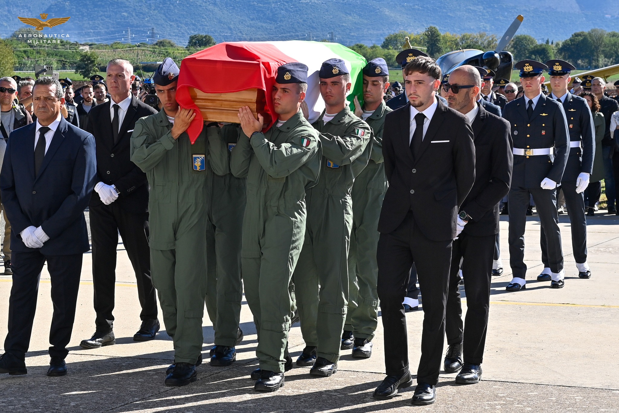 “Oggi, con il cuore colmo di dolore, - scrive l’Aeronautica Militare - abbiamo accompagnato nel loro ultimo viaggio Simone e Lorenzo, tragicamente scomparsi nell'incidente aereo del 1° ottobre scorso durante una missione di addestramento con un velivolo T-260B. Il Gen. B.A. Simone Mettini e l'Allievo Ufficiale Pilota Lorenzo Nucheli hanno lasciato nei loro cari e in tutti noi un vuoto incolmabile”.