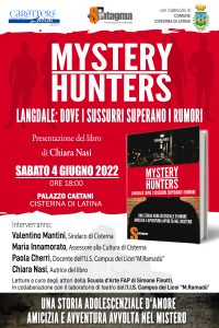 CISTERNA - Sarà l’adolescenza raccontata da un’adolescente ad aprire le presentazioni letterarie del mese di giugno a Cisterna di Latina. Domani, sabato 4 giugno, alle 18, si terrà la presentazione di “Mystery Hunters. Langdale: dove i sussurri superano i rumori”, la storia adolescenziale d’amore, amicizia e avventura avvolta nel mistero, scritta dalla 17enne Chiara Nasi di Cisterna. A dar vita ad alcuni personaggi ed estratti del libro, saranno gli studenti dell’Istituto Ramadù frequentanti il laboratorio di teatro e gli attori della Scuola d’Arte FAP di Simone Finotti.