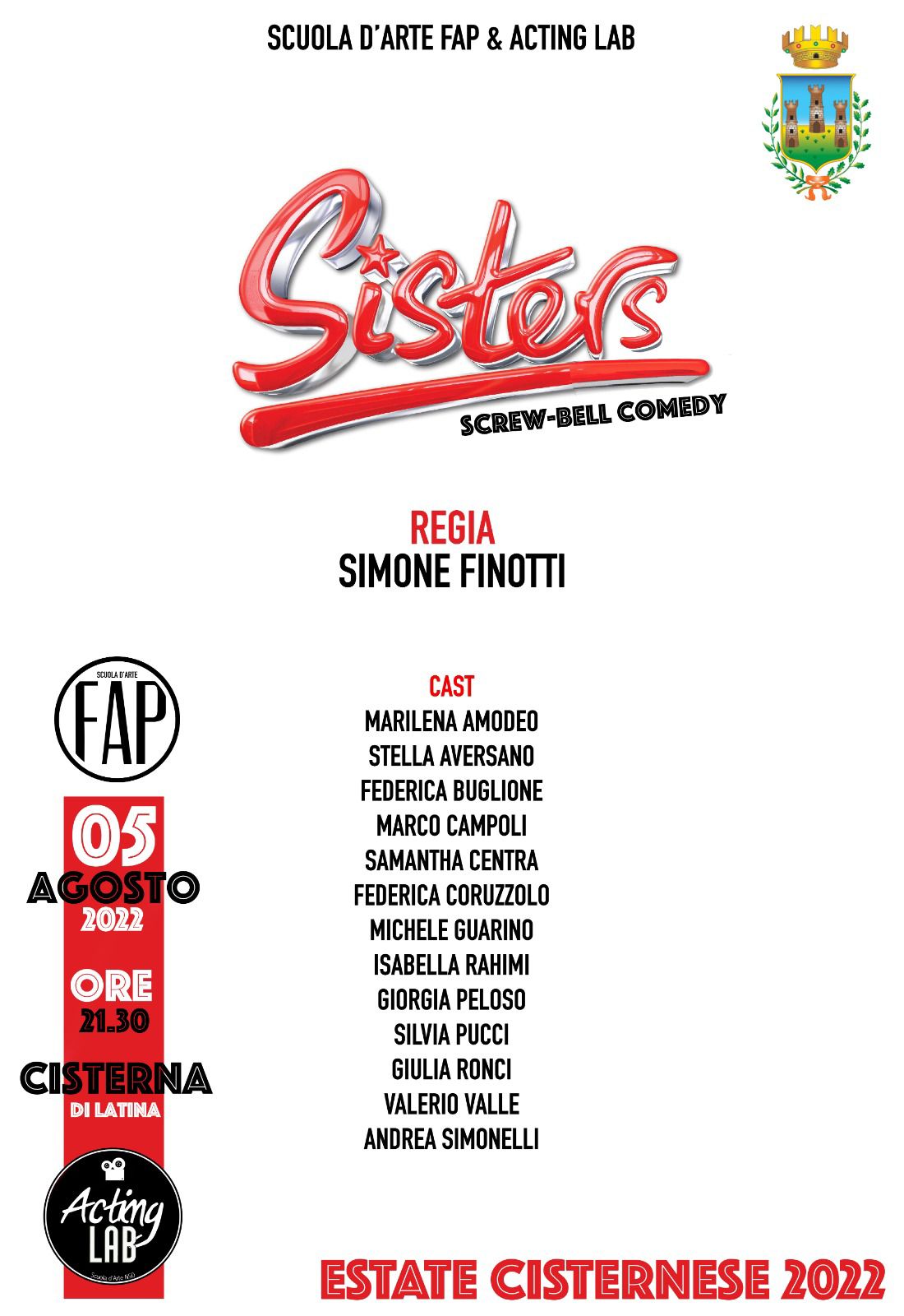 Cisterna Estate 2022 - Doppio appuntamento venerdì 5 agosto: la proiezione del corto “Volevo essere Gassman” e la commedia brillante “Sisters”
