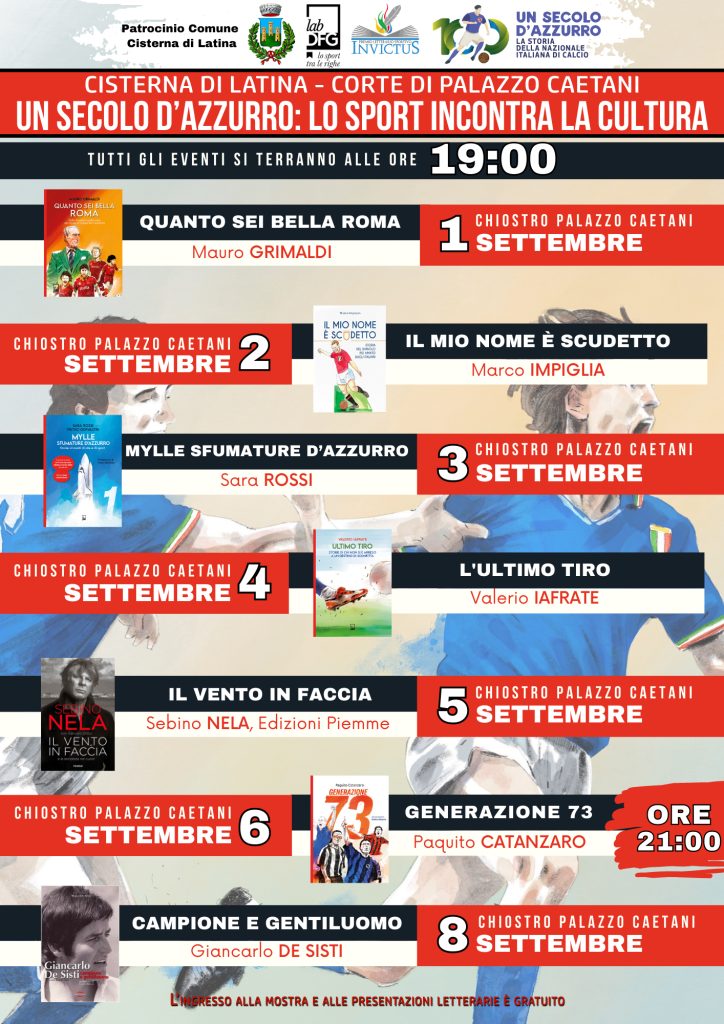 Dal 1° al 10 settembre, nelle Sala Merolla e SalaMimosa di Palazzo Caetani, storia e cultura sportiva si fonderanno all’interno della mostra antologica “Un secolo d’Azzurro”.