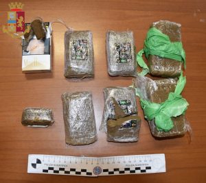 Civitavecchia. Trovato in possesso di oltre 850 grammi di hashish, 35enne arrestato dalla Polizia di Stato poiché gravemente indiziato del reato di detenzione ai fini di spaccio di sostanze stupefacenti.