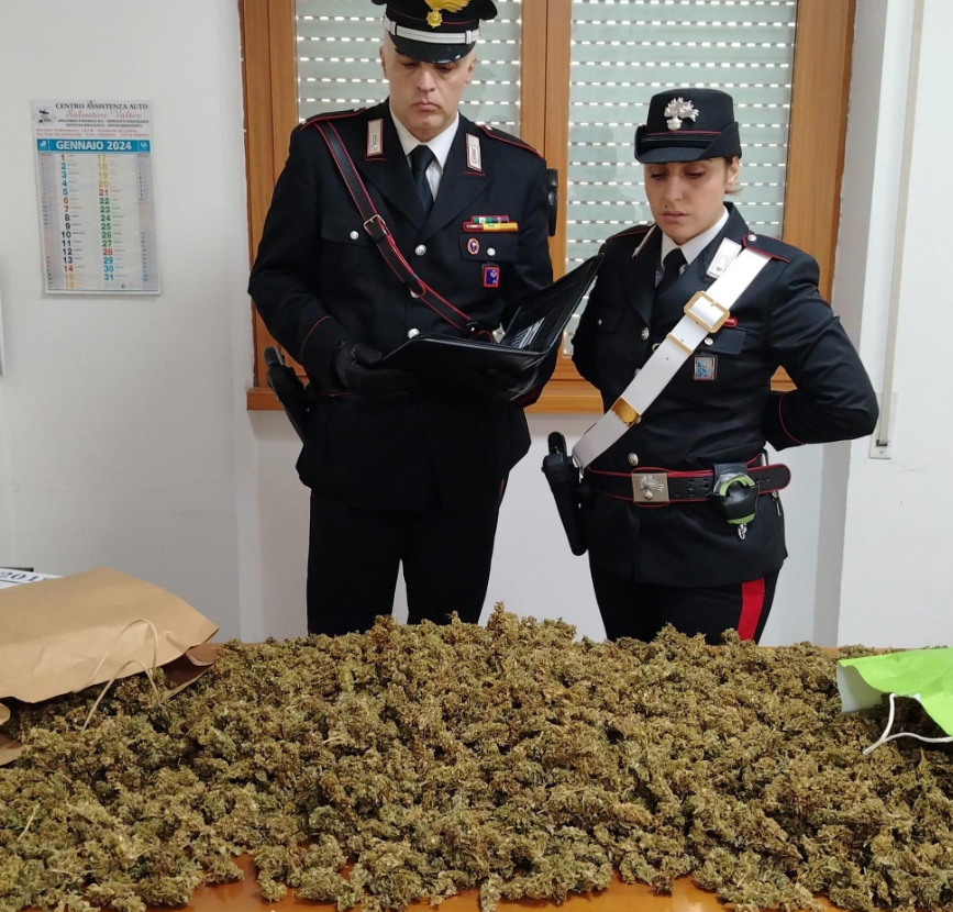 Il 30 ottobre scorso, al termine delle indagini preliminarmente condotte, i Carabinieri della Stazione di Cisterna hanno deferito, in stato di libertà, un 56enne del capoluogo pontino, per detenzione ai fini di spaccio di sostanze stupefacenti. Gli accertamenti condotti dai militari della predetta Stazione Carabinieri hanno avuto inizio lo scorso 10 ottobre, quando, su richiesta pervenuta dal proprietario di un immobile, disabitato da diversi anni, sono intervenuti presso il predetto immobile, dove l’uomo aveva riferito di avere rinvenuto delle buste che presumibilmente contenevano della sostanza stupefacente. Giunti sul posto, i militari operanti, alla presenza del richiedente, hanno effettuato un’ispezione nei locali indicatigli, rinvenendo 13 buste di carta contenenti complessivamente grammi 500 circa di infiorescenze di marijuana, un secchio del peso complessivo di due chilogrammi circa contenete la medesima sostanza, oltre ad altro materiale riconducibile al medesimo contesto. Pertanto, nell’impossibilità di risalire nell’immediato al detentore della predetta sostanza, i Carabinieri di Cisterna di Latina, all’esito di un accurato sopralluogo, hanno avviato mirate indagini che gli hanno consentito di risalire all’odierno indagato, un 56enne di Latina. L’uomo, sentito in ordine al predetto rinvenimento, ha confermato che la sostanza stupefacente fosse la sua. La sostanza stupefacente in sequestro, su autorizzazione dell’Autorità Giudiziaria, sarà inviata l Reparto Investigazioni Scientifiche di Roma per le analisi qualitative e quantitative.