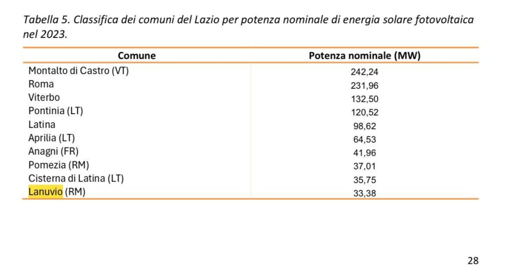 Comuni rinnovabili 2024: anche Aprilia tra i primi 10 del Lazio
