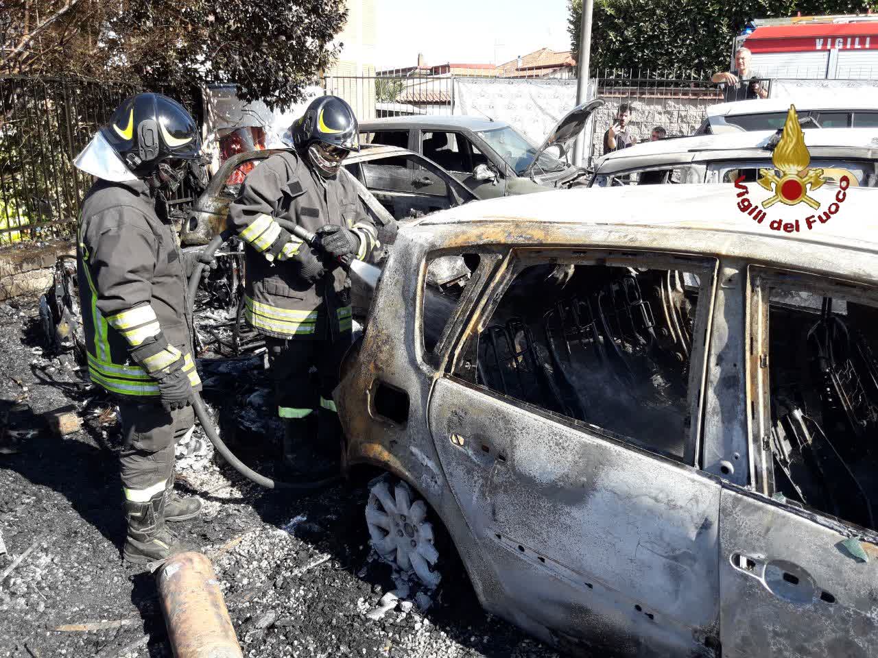 L’incendio ha coinvolto diverse auto ed una struttura in legno adibita ad ufficio, andata completamente distrutta. Non ci sono stati feriti. Sul posto si sono portate anche le forze dell’ordine. Da stabilire le cause del rogo.