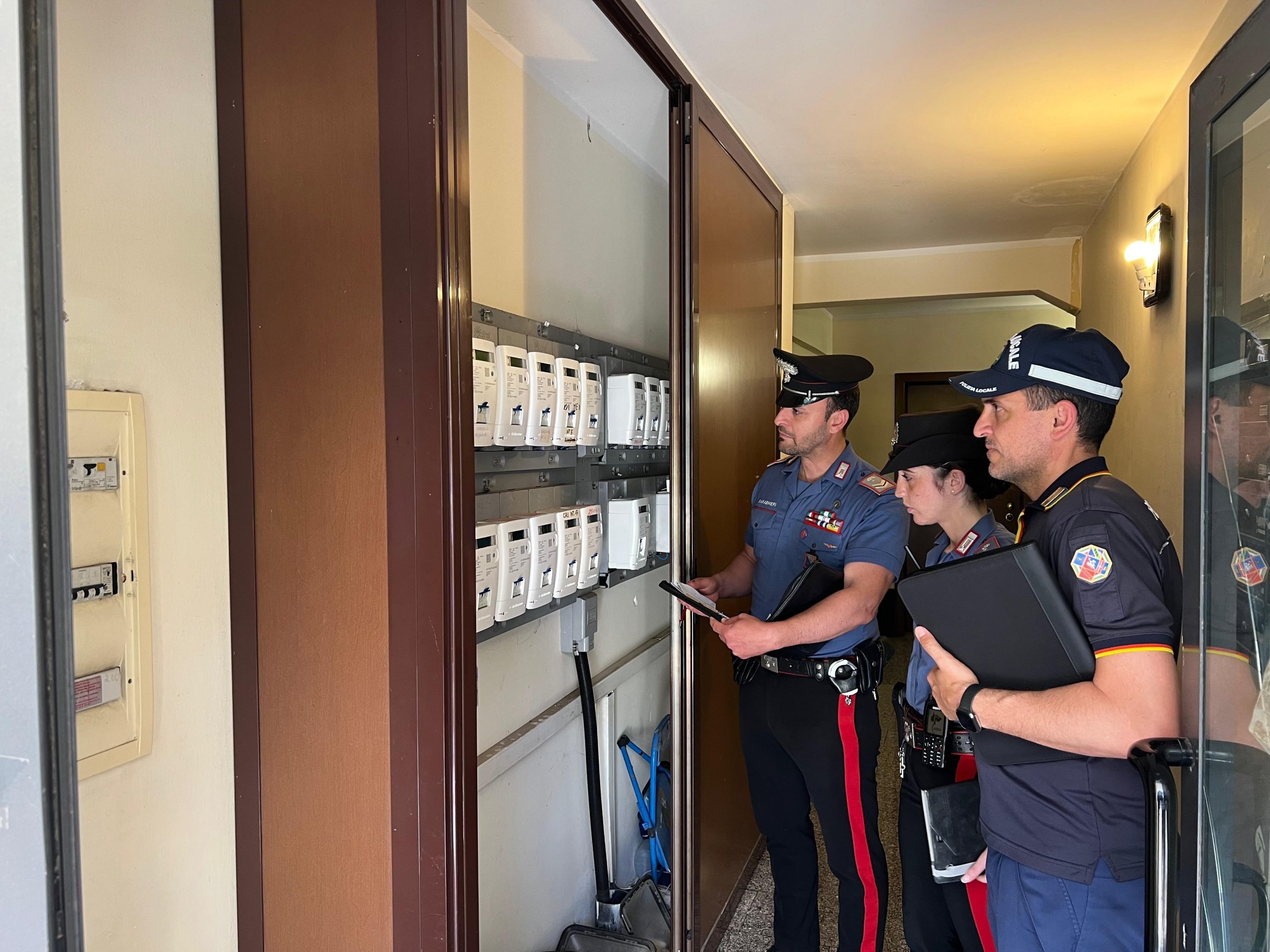 Le verifiche dei Carabinieri, estese anche ai contatori di energia elettrica, hanno consentito di accertare un allaccio abusivo a un contatore, sul quale era stato realizzato un bypass che si agganciava direttamente alla rete pubblica, eludendo il sistema di calcolo dei consumi.