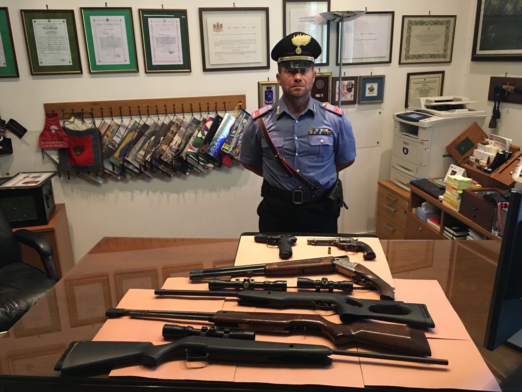 In totale, i Carabinieri hanno ritirato 8 fucili, 5 pistole e 20 munizioni, tra sequestri e ritiri amministrativi.