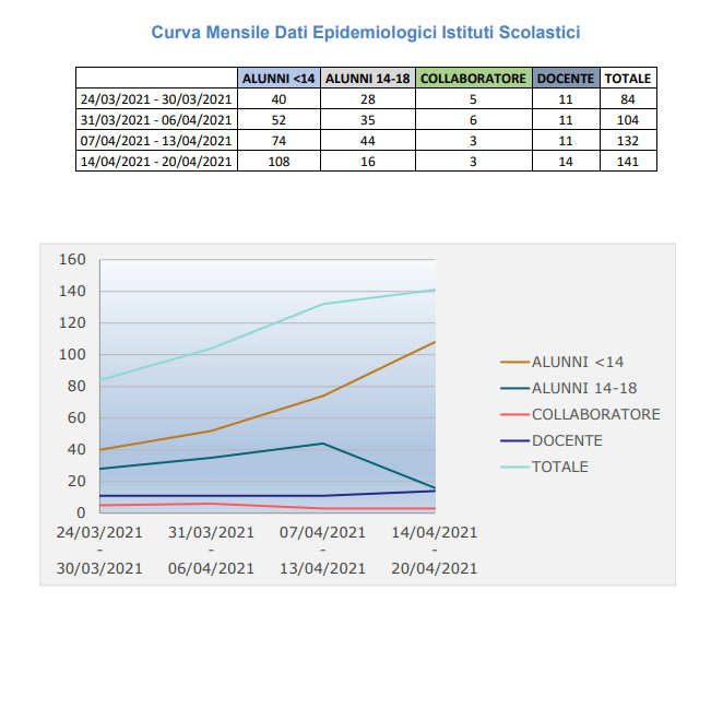 Coronavirus – La Asl di Latina ha fornito i dati epidemiologici degli Istituti Scolastici della provincia, un aggiornamento al 20 aprile. Ad oggi sono 41 le classi in quarantena, 78 sono invece gli studenti positivi, 13 i docenti e altro personale scolastico. La maggior parte dei casi è stata rilevata nei bambini: con 108 positivi tra gli alunni con meno di 14 anni nella settimana tra il 14 aprile e il 20 aprile.