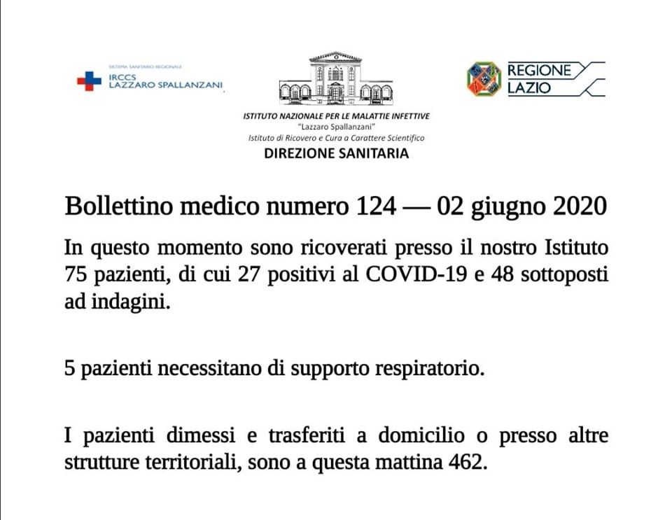 Coronavirus, diramato il bollettino medico odierno dell’Istitito Spallanzani di Roma: 75 pazienti sono ancora ricoverati, 27 dei quali sono positivi al Covid-19. 48, invece, i pazienti ancora sottopos...