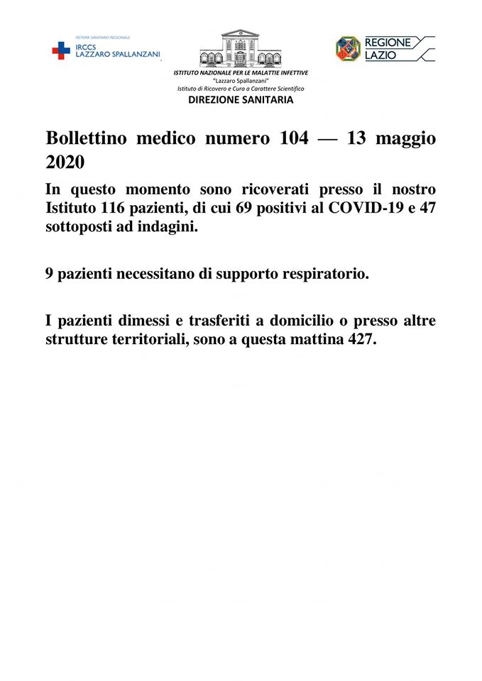 Coronavirus, il bollettino medico dello Spallanzani: 69 i pazienti positivi, in 47 sottoposti ad indagine.